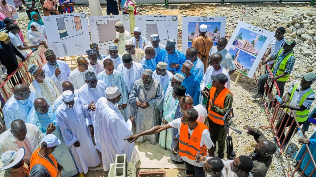 En compagnie des différentes autorités présentes à la cérémonie, Sérigne Cheikh Ahmed Tidiane Sy Dabakh a procédé à la pose officielle et symbolique de la première pierre avant le démarrage des travaux.